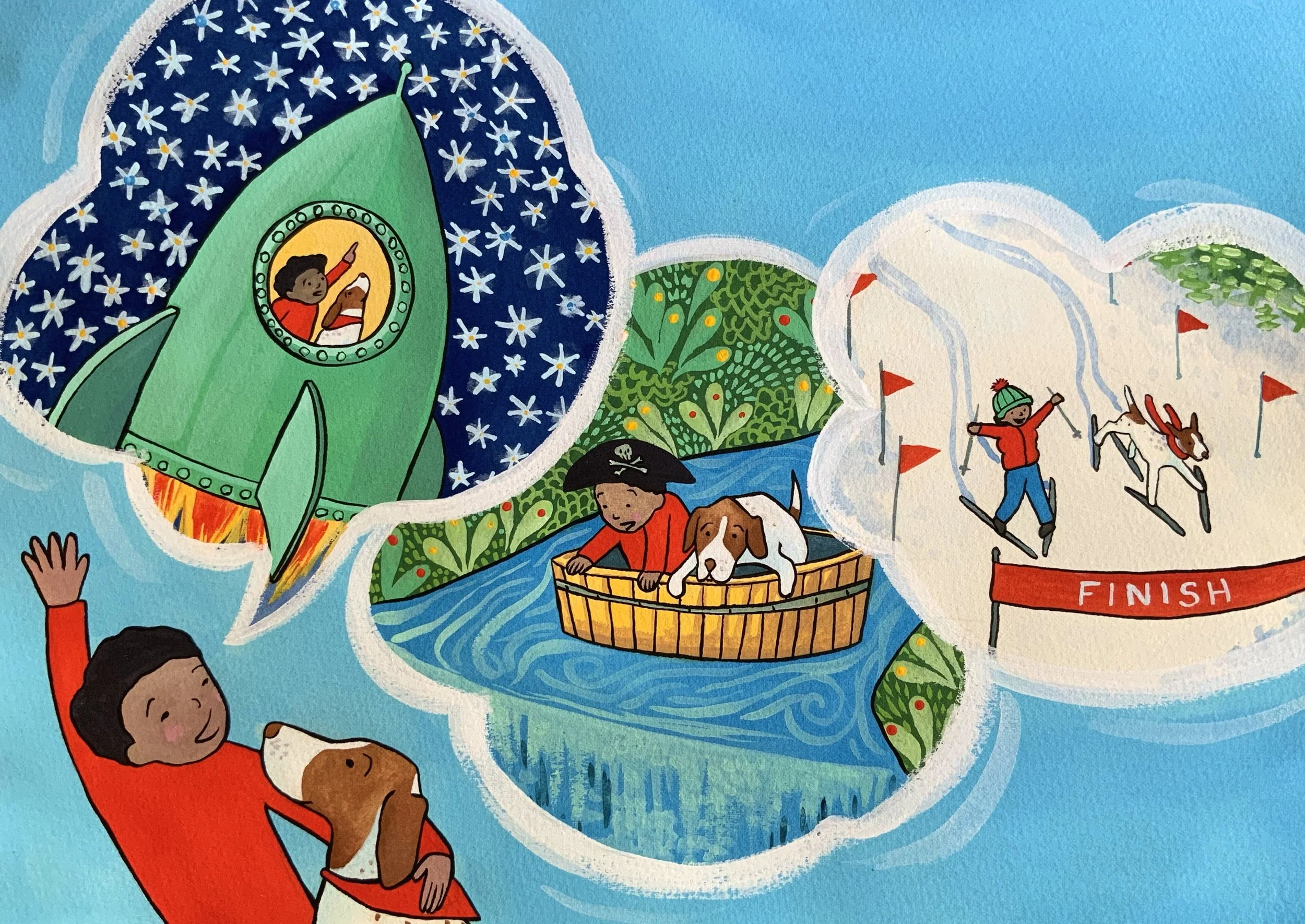Claire likes to tell stories of adventure, with bold young characters exploring their worlds.